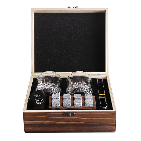 Top Seller Granite Chilling Whisky Rocks Bar Accessories Whiskey Stones Set With Glass Glasses Gift Wooden Box Set for Cigar Men